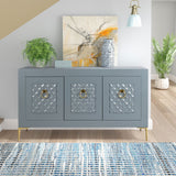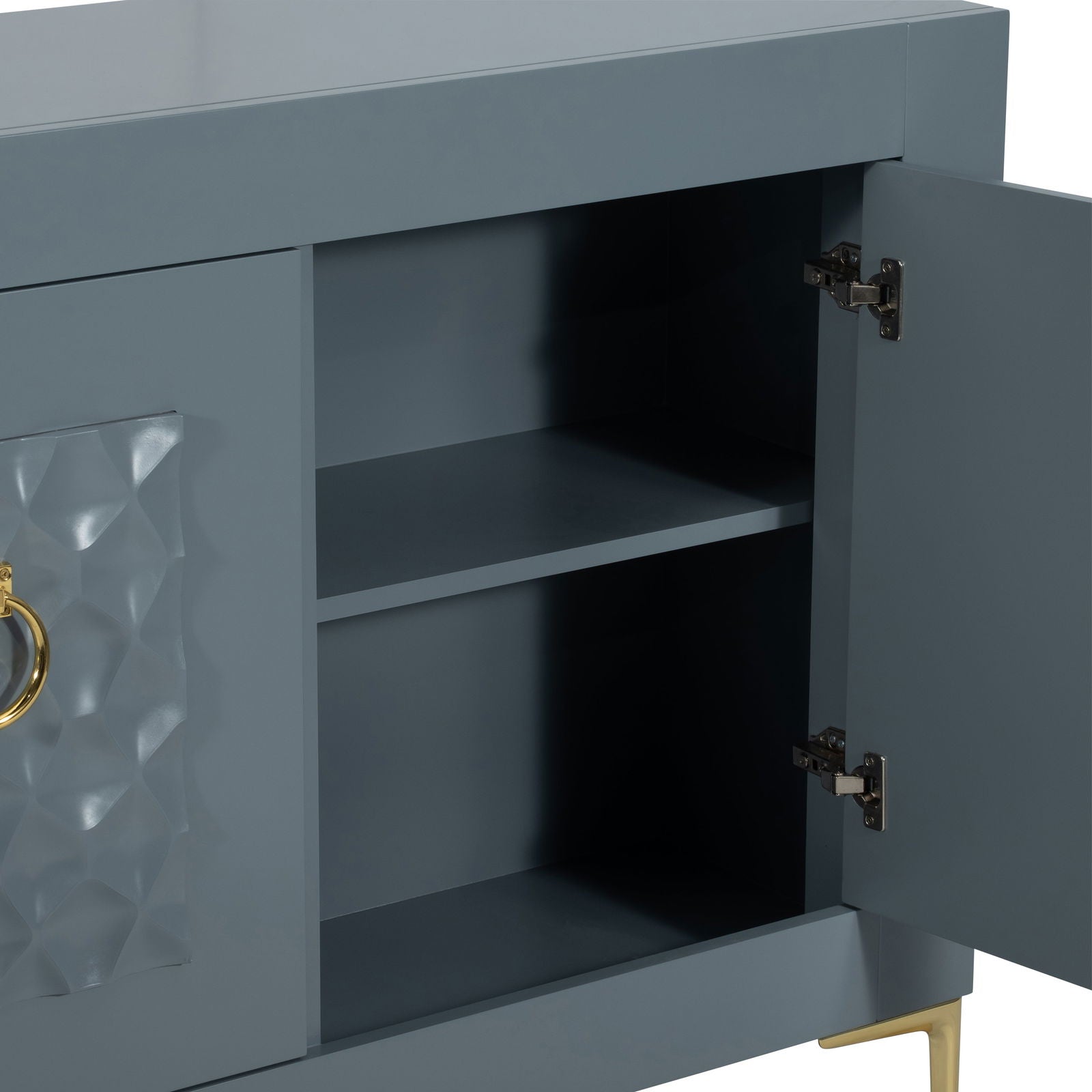 Chic Gray and Gold Finish: The console cabinet features a chic gray facade accented with elegant gold details, creating a perfect blend of modern and glam styles. The gold ring handles add a touch of luxury, making this piece a striking focal point in your home.